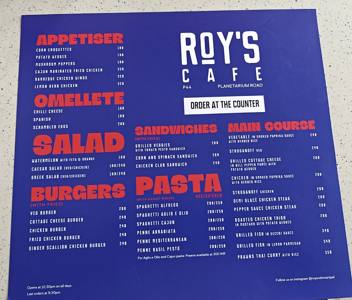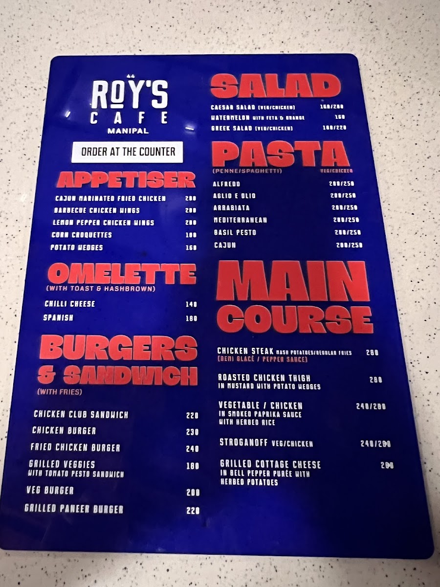 Welcome to Roy's Cafe, a treasured gem located in the heart of Manipal at Sahana, Ananthnagar. Positioned conveniently beside Rotary Hall, this cozy café has earned a reputation not just for its delightful offerings but also for its welcoming atmosphere—a perfect escape for both locals and visitors alike.